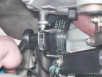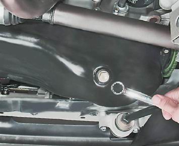 5. Дождавшись полного слива масла из поддона картера двигателя, заворачиваем пробку сливного отверстия. 6. Съемником ослабляем затяжку масляного фильтра.