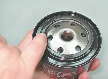 Затягиваем фильтр усилием рук. 10. Заливаем масло в двигатель, контролируя его уровень по указателю (см. "Система смазки - проверка уровня масла").