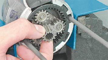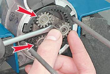 7. Снимаем центральную шестерню планетарного редуктора (иногда шестерня остается на валу якоря).