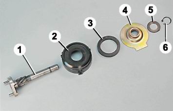 15. Снимаем с привода (4) шайбу (2), муфту (5) в сборе с рычагом привода (3).
