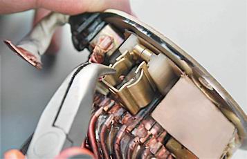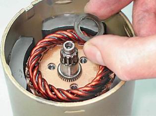 23. Преодолевая усилие магнитов, вынимаем якорь из статора.