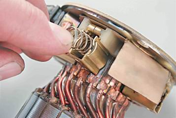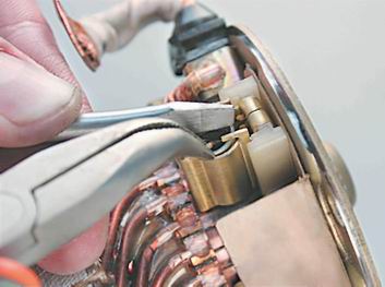 20. Поддев шлицевой отверткой, снимаем щеточный узел с коллектора якоря.
