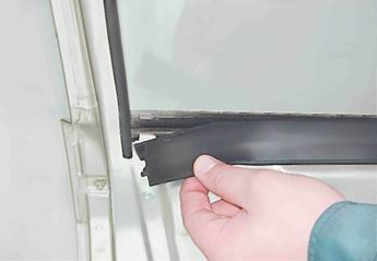 6. Вынимаем верхний уплотнитель стекла.