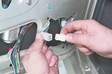 7. Разъединяем колодку жгута проводов мотор-редуктора стеклоподъемника.