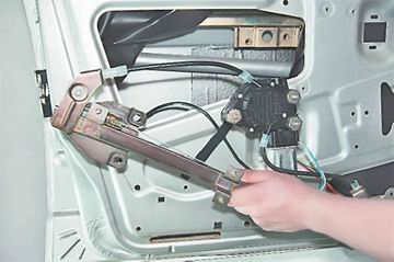 9. Извлекаем стеклоподъемник из двери.