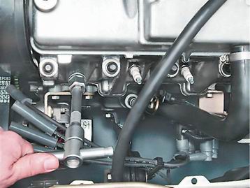 Свечи зажигания - проверка и заменаРекомендация: Свечи зажигания следует заменять через каждые 30000 км пробега, или при выходе их из строя, если двигатель стал работать неустойчиво на холостом ходу. Для выполнения работы потребуется специальный торцовый ключ для свечей зажигания на 21 мм. Последовательность выполнения 1. Снимаем высоковольтный провод со свечи первого цилиндра (см. выше, "Высоковольтные провода - проверка и замена"). 2. Протираем ветошью и обдуваем сжатым воздухом от шинного насоса место установки свечи зажигания (чтобы песчинки не попали в цилиндр после удаления свечи). 3. Торцовым ключом для свечей зажигания на 21 мм отворачиваем свечу.
