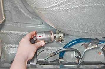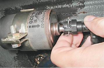 б) Отсоединяем трубки топливопровода от фильтра.