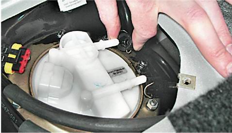 После соединения трубок топливопровода с топливным модулем включаем зажигание на 5 с и проверяем герметичность соединений. При необходимости плотнее надеваем наконечники трубок топливопровода на патрубки топливного модуля. При подтекании топлива заменяем уплотнительные кольца в негерметичных соединениях. |