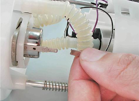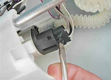 8. Освобождаем два фиксатора датчика уровня топлива.