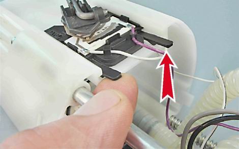 5. Отжимаем фиксатор колодки проводов...
