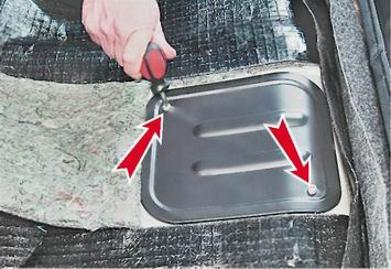3. Крестовой отверткой отворачиваем два самореза крепления крышки люка и снимаем крышку.
