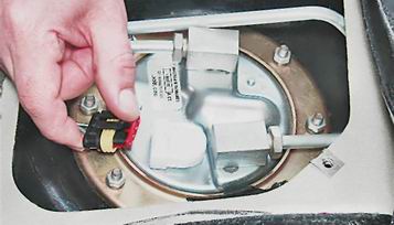 4. Отсоединяем колодку жгута проводов от топливного модуля.