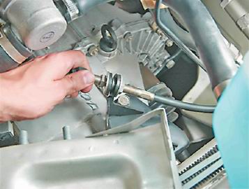 Предупреждение! На палец педали надета полиэтиленовая втулка, не потеряйте ее. 7. В моторном отсеке извлекаем трос из отверстия перегородки.