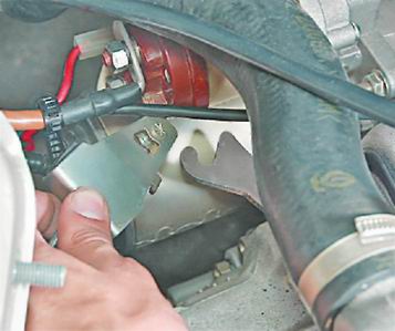Трос сцепления - заменаЗаменяем трос при его обрыве, заедании в оболочке или чрезмерном вытягивании. Снятие 1. Для удобства работы снимаем воздушный фильтр (см. "Воздушный фильтр - снятие и установка"). 2. Ослабляем затяжку и отворачиваем на несколько оборотов регулировочную гайку троса сцепления (см. выше, "Привод выключения сцепления - регулировка"). 3. Выводим наконечник оболочки троса из прорези кронштейна (для наглядности на фото аккумуляторная батарея снята).