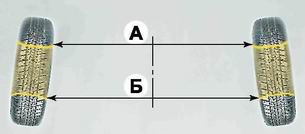Углы установки передних колес - проверкаДля обеспечения правильного качения колес автомобиля с учетом работы подвески и рулевого управления, элементы передней подвески должны быть установлены в определенном положении. Проверять и регулировать углы установки передних колес рекомендуется в специализированных технических центрах, располагающих соответствующим оборудованием. Замечание: Углы установки передних колес указаны в разделе "Справочные данные". Угол развала передних колес - это угол наклона плоскости вращения колеса относительно вертикали. Неравномерность углов развала передних колес вызывает увод автомобиля в сторону при прямолинейном движении. Большой положительный развал (когда верхняя часть колеса выступает наружу) приводит к ускоренному износу наружной части протектора шины, а большой отрицательный развал - внутренней части протектора (см. "Колеса, шины и ступицы - проверка технического состояния"). Угол развала переднего колеса регулируется верхним болтом крепления поворотного кулака к стойке. Болт имеет эксцентриковую головку, а также специальную шайбу. Схождение передних колес - это угол между плоскостью вращения колеса и продольной плоскостью симметрии автомобиля в положении прямолинейного движения. Схождение определяется как разность расстояний между ободьями передних колес в миллиметрах (Б-А, см. рис). Нарушение схождения передних колес ухудшает управляемость и курсовую устойчивость автомобиля и приводит к интенсивному износу шин.