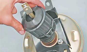 4. Извлекаем штуцер обратного клапана из отверстия вакуумного усилителя.