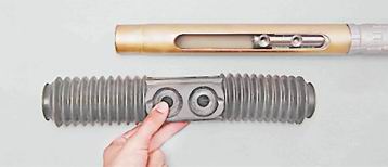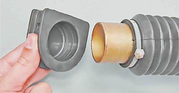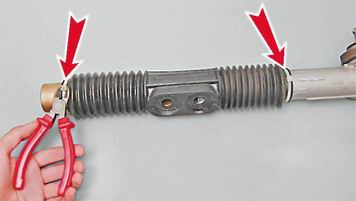 Защитный чехол рулевого механизма - заменаСнятие 1. Снимаем рулевой механизм (см. "Рулевой механизм - снятие и установка"). 2. Отсоединяем от рулевого механизма рулевые тяги (см. "Рулевые тяги - снятие и установка"). 3. Снимаем с правого торца рулевого механизма резиновую опору.