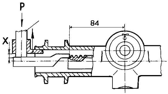 Рис. 5-3. Проверка зазора между упором рейки и гайкой: P - пуансон; X - контрольный размер